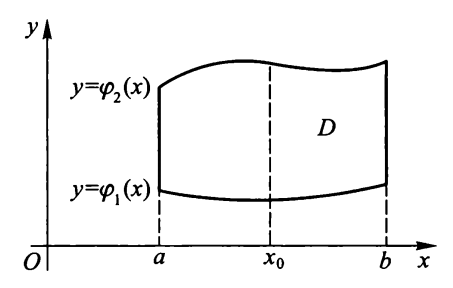 \(D = {(x, y): \varphi_1(x) \le y \le \varphi_2(x), a \le x \le b}\)