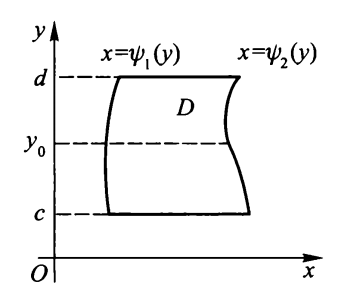 \(D = {(x, y): \psi_1(y) \le x \le \psi_2(y), c \le x \le d}\)