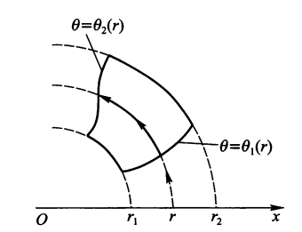 \(\sigma: \theta_1(r) \le \theta \le \theta_2(r), r_1 \le r \le r_2\),即 \(\sigma\) 是由曲线 \(\theta = \theta_1(r), \theta = \theta_2(r)\) 与圆 \(r = r_1, r = r_2\) 所围成的区域,则有: