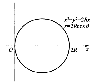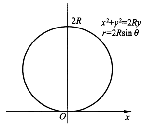 \[ \iint\limits_\sigma f(x, y) \mathrm{d}\sigma = \int_0^\pi \mathrm{d}\theta \int_0^{2R \sin \theta}f(r\cos \theta, r\sin \theta)r \mathrm{d}r \]