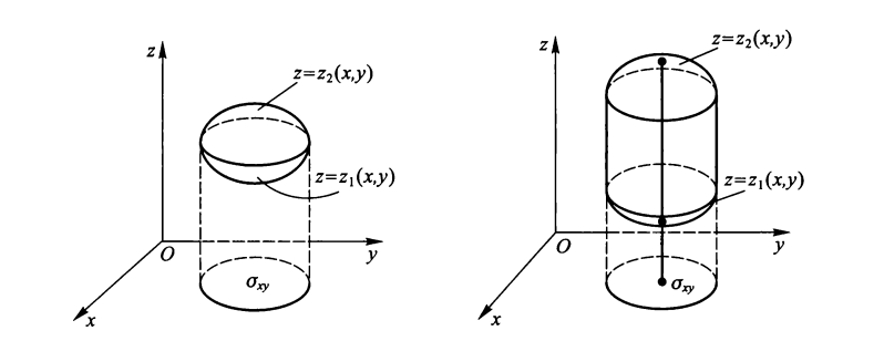 \(V = \{(x, y, z): z_1(x, y) \le z \le z_2(x, y), (x, y) \in \sigma_{xy}\}\)