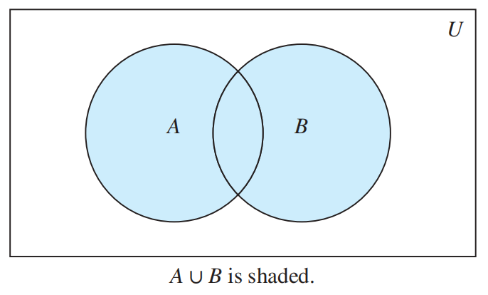 - 并集 (union):\(A \cup B = \{x|x \in A \vee x \in B\}\)