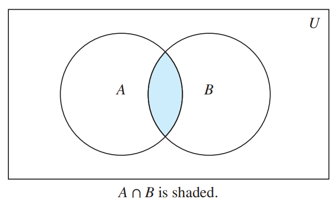 - 交集 (intersection):\(A \cap B = \{x|x \in A \wedge x \in B\}\)。如果 \(A \cap B = \emptyset\),被称为不相交 (disjoint) 集。