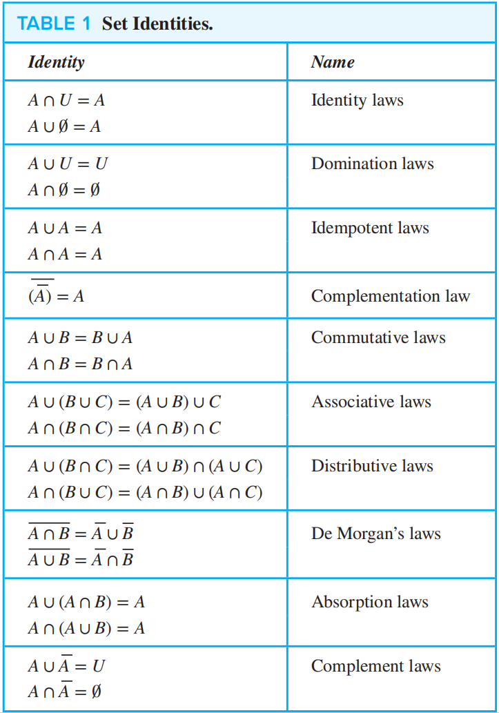 - \(A \cup B = B \Leftrightarrow A \subseteq B\)