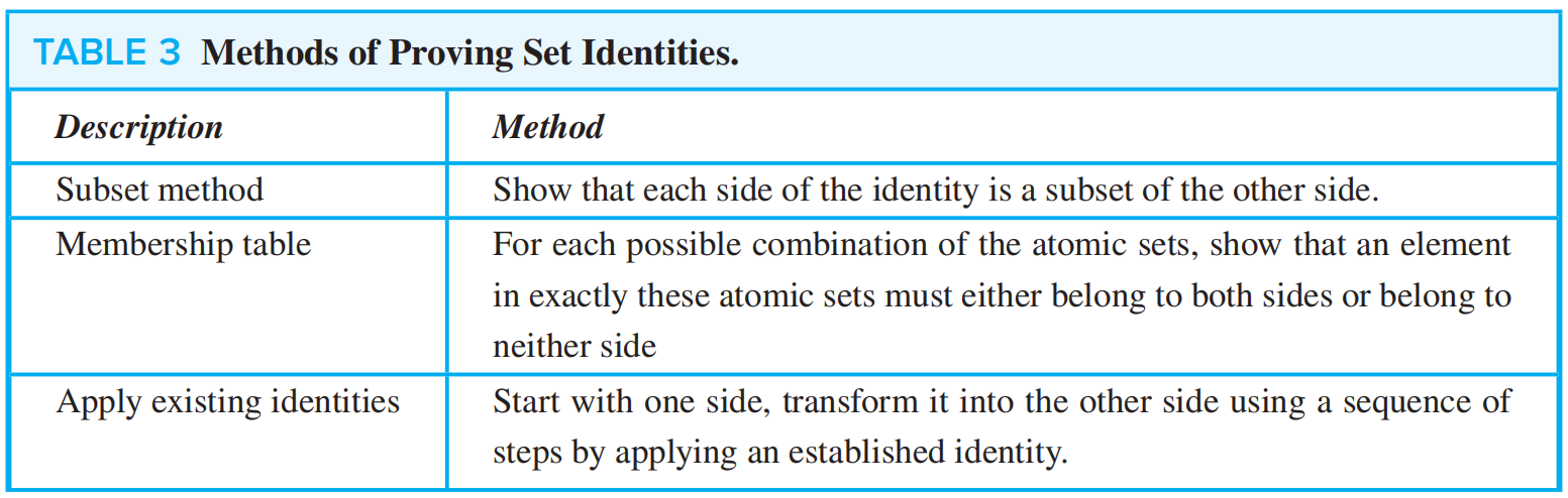 - 如何说明 \(A \subseteq B\):说明每个属于 A 的元素也属于 B