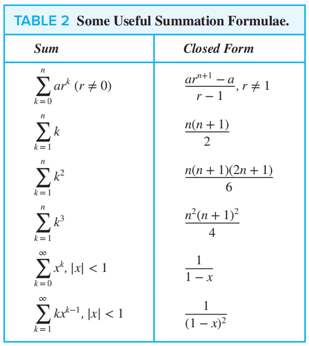 - telescoping( 套管式?):\(\sum\limits_{j = 1}^n(a_j - a_{j - 1}) = a_n - a_0\)
