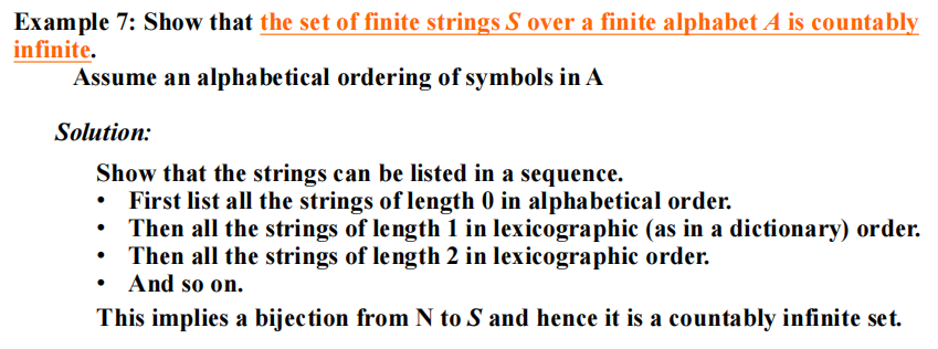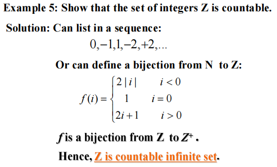 ⭐判断方法:当能够列出以序列 (sequence) 元素为集合的所有元素(即双射关系 \(f: Z^+ \rightarrow {a_n}\),有 \(a_1 = f(1), a_2 = f(2), \dots, a_n = f(n), \dots\)