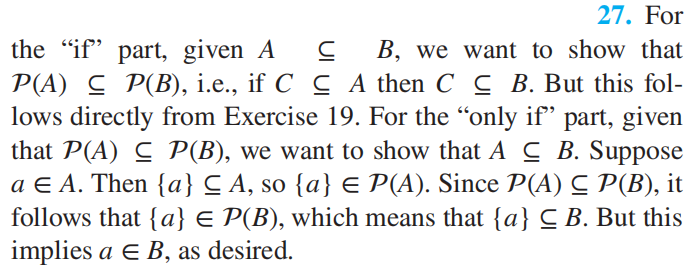 - \(P(A) \subseteq P(B) \leftrightarrow A \subseteq B\)