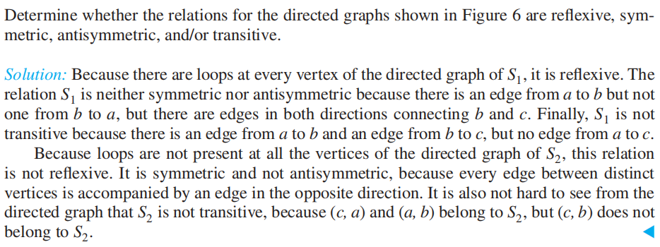 - 但如果一个关系存在形如 \((a, b), a \ne b\) 的有序对,那么它就不会同时具有这两个性质
