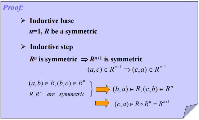 - 如果 \(R\) 具有自反性,则 \(R^n\) 也具有自反性