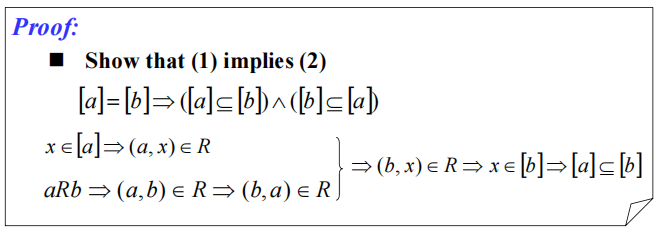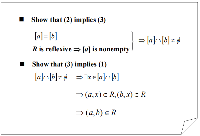 - \((a\ R\ b) \wedge (b\ R\ c) \rightarrow c\ R\ a\),称 \(R\) 是有循环的 (circular)。当且仅当 \(R\) 为等价关系时,\(R\) 即自反又有循环