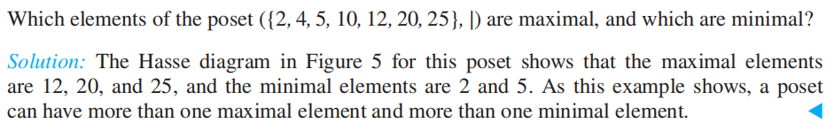 - 如果不存在 \(b \in S\),满足 \(b \prec a\),则称 \(a\) 为极小元素 (minimal)
