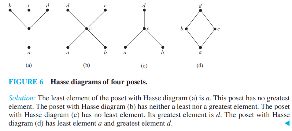 - 在哈斯图中,它们分别是最顶部( 上面没有顶点 ) 和最底部( 下面没有顶点 ) 的元素
