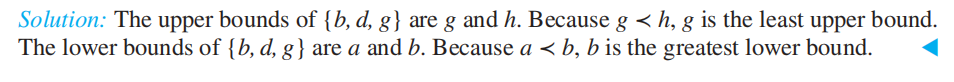 - \(a \preceq u\ \Rightarrow\) \(u\) 被称为 \(A\) 的上界 (upper bound)