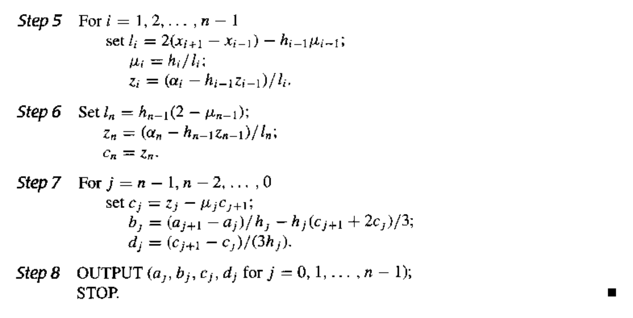 - \([x_{j-1}, x_j]\): \(S_j'(x) = -M_{j-1} \dfrac{(x_j - x)^2}{2h_j} + M_j \dfrac{(x - x_{j-1})^2}{2h_j} + f[x_{j-1}, x_j] - \dfrac{M_j - M_{j-1}}{6}h_j\)