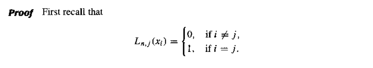 每个 \(L_{n, i}\) 都有 \(n\) 个根 \(x_0 \dots \widehat{x_i} \dots x_n\)。可以得到: