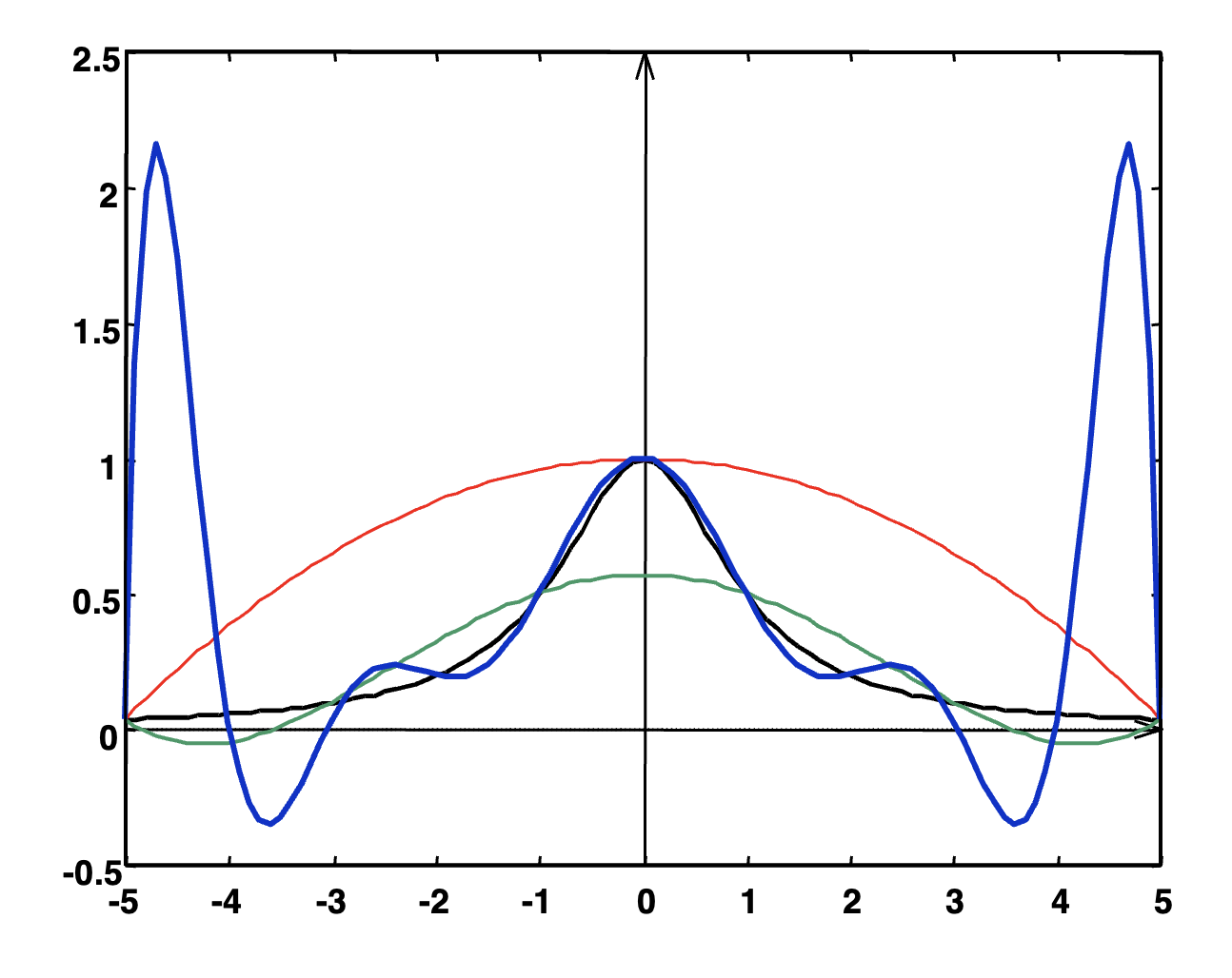 可以看到,我们无法用多项式(这些彩色曲线)较为准确地近似函数(黑色曲线
