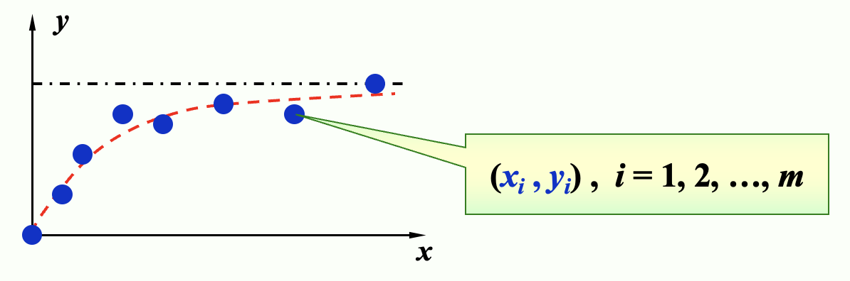 线性化(linearization):令 \(Y = \dfrac{1}{y}, X = \dfrac{1}{x}\),那么 \(Y \approx a + b X\) 就是一个线性问题了。