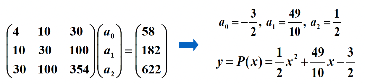 令 \(b_k = \sum\limits_{i=1}^m x_i^k, c_k = \sum\limits_{i=1}^m y_i x_i^k\),那么: