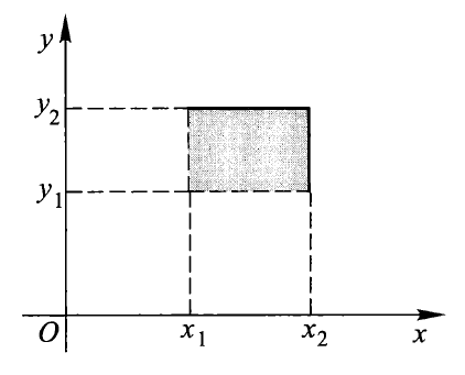 若 \(D_1\) 是 \(D\) 的一个子集,则可得到 \(P((X, Y) \in D_1) = \iint\limits_{D_1}f(x, y)\text{d}x\text{d}y\),即 \(P((X, Y) \in D_1) = \dfrac{\text{Area of}\ D_1}{\text{Area of}\ D}\)