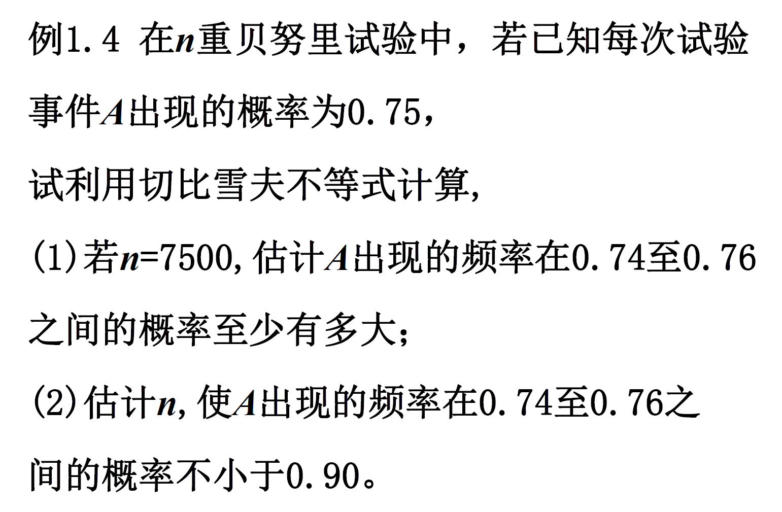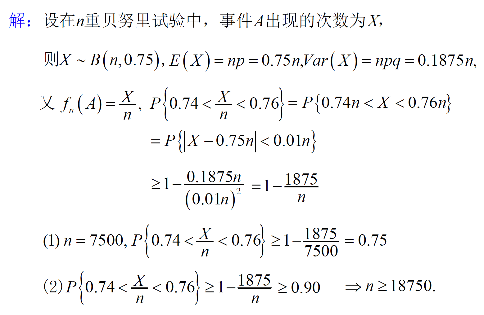 • 伯努利大数定律:在 n 重伯努利试验中,频率稳定于概率