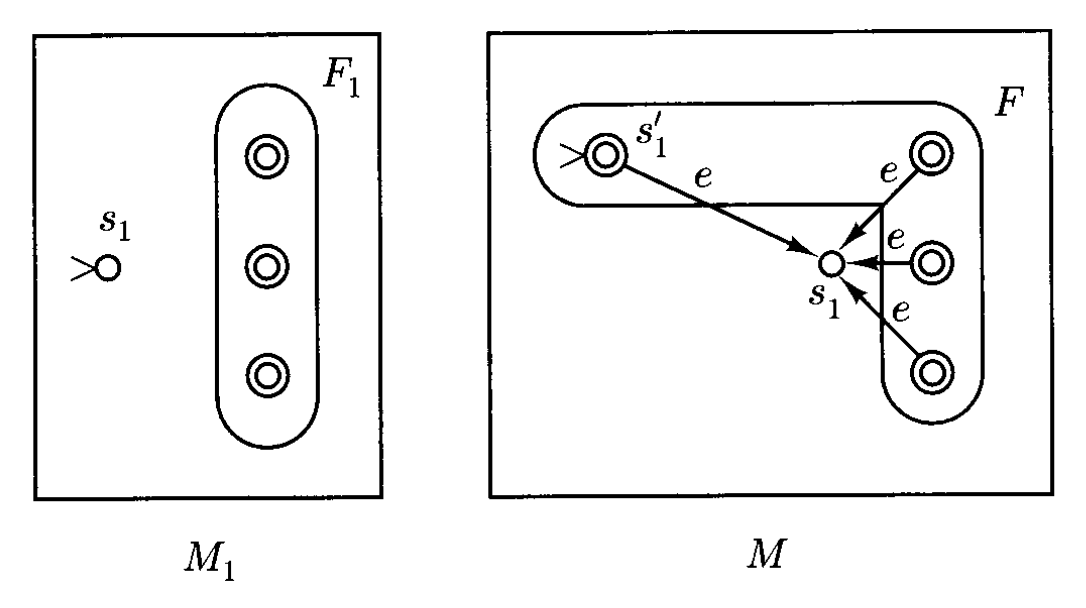事实上,虽然看起来 NFA 比 DEA 更强大、更通用,但实际上 NFA 总是可以被转换为等价的 DFA。形式上,对于两个有限自动机 \(M_1, M_2\)(无论是 DFA 还是 NFA