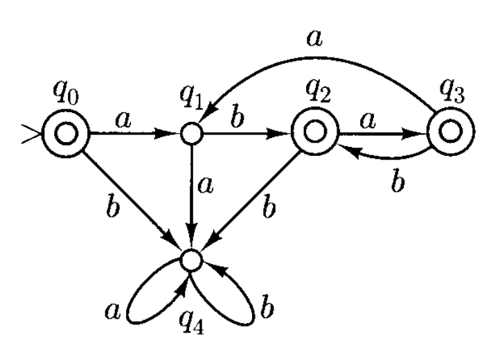对于输入 \(bababab\),即有可能陷入 \(q_0\) 状态出不去:也有可能顺利抵达最终状态: