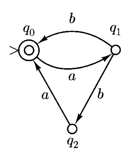 - 可构造 DFA 识别 \(L\)(4 个状态,起始和终止状态均为同一个状态,每读取一个符号向前移动一次)