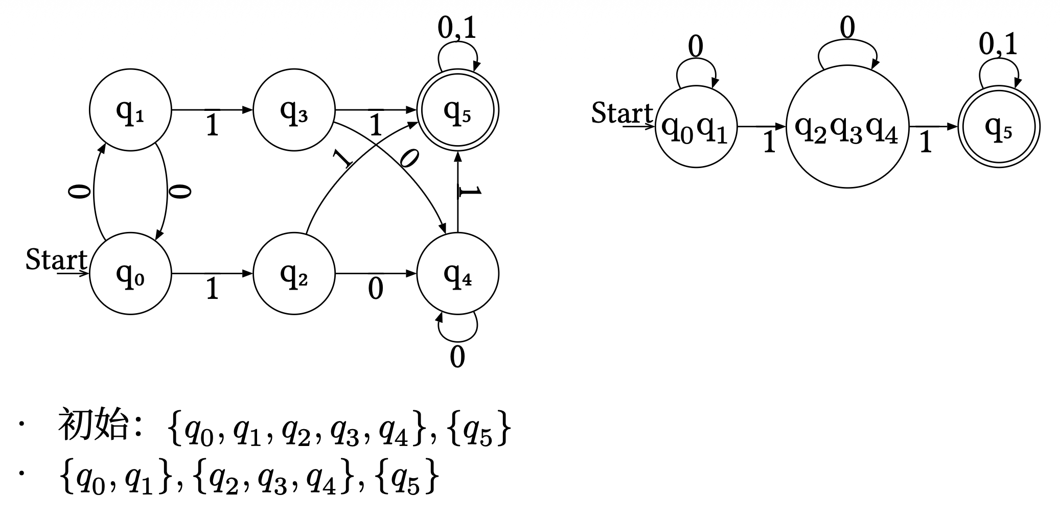 - 接受状态与非接受状态不等价