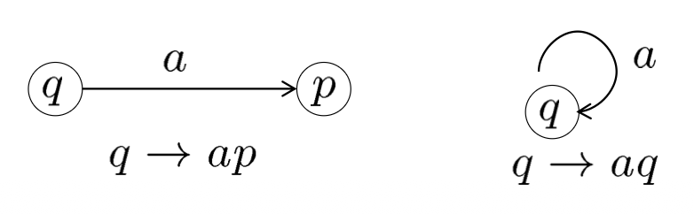 - 假如有配置 \((q, w, abc)\),那么 \(a\) 在栈顶,\(c\) 在栈底