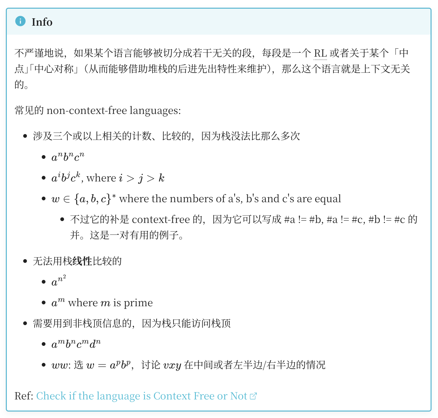 - CFL 的闭包性质:并、拼接、克莱尼星号(注意补和交不封闭)