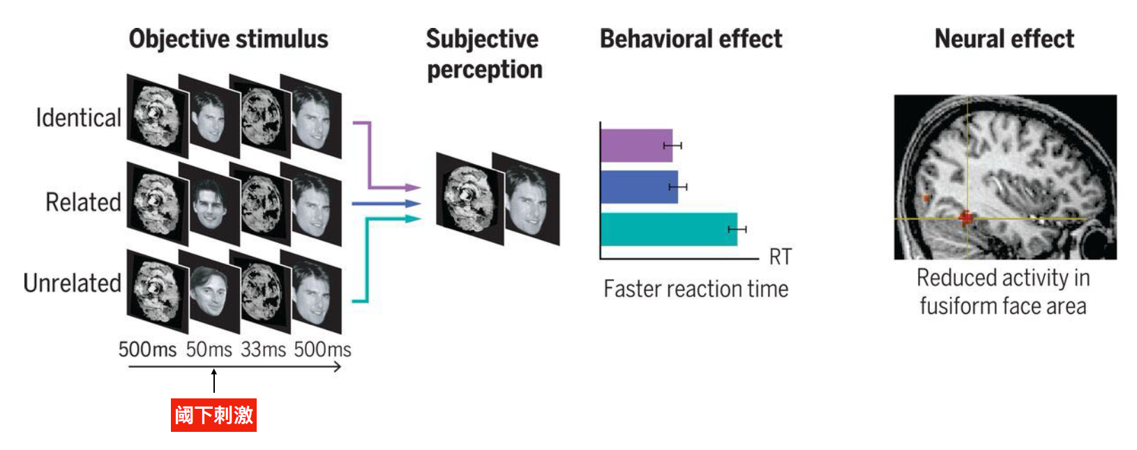 负启动效应(negative priming):当探测刺激与先前被忽略的启动刺激相同或相关时,对探测刺激的反应变慢或准确度下降。