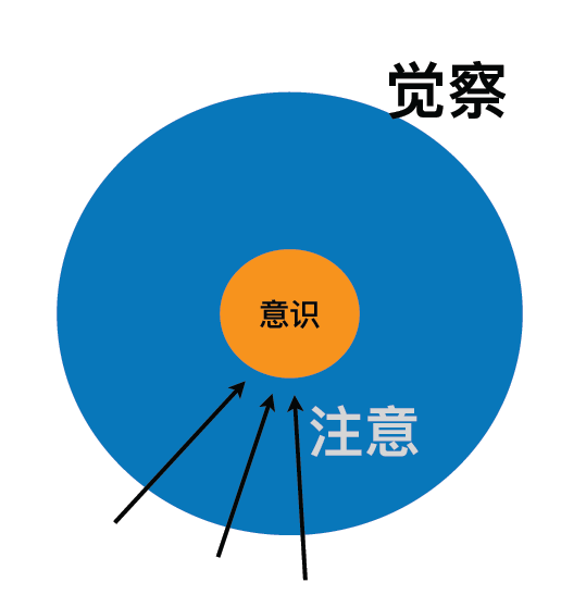 - 注意是⼀种⼼理活动或“⼼理动作”,⽽意识主要是⼀种⼼理内容或体验。只有被注意到的内外刺激,才能被个体所觉察,进⽽产⽣意识。