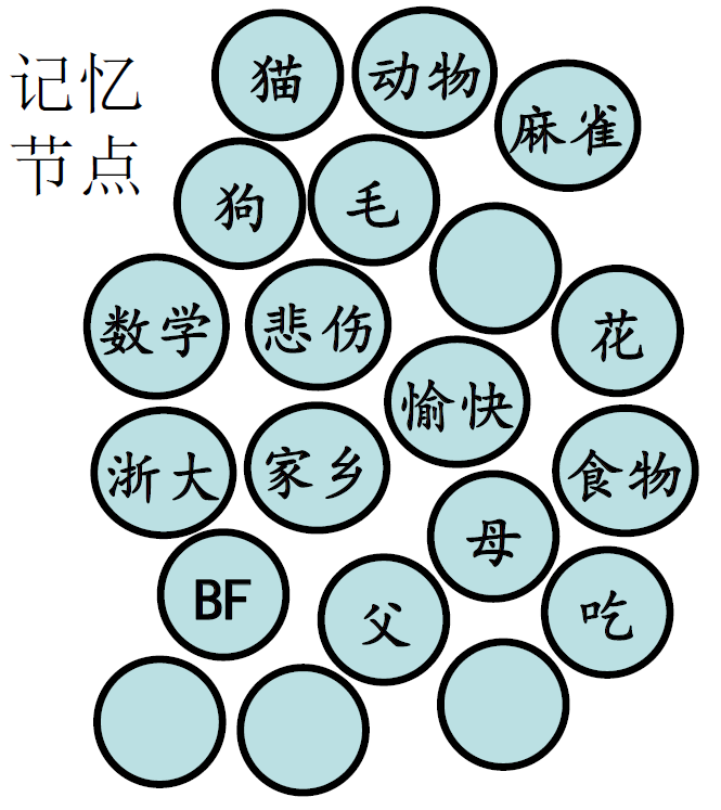 - 激活扩散模型:记忆网络中的各个记忆节点相互联系,相似节点间的距离更近