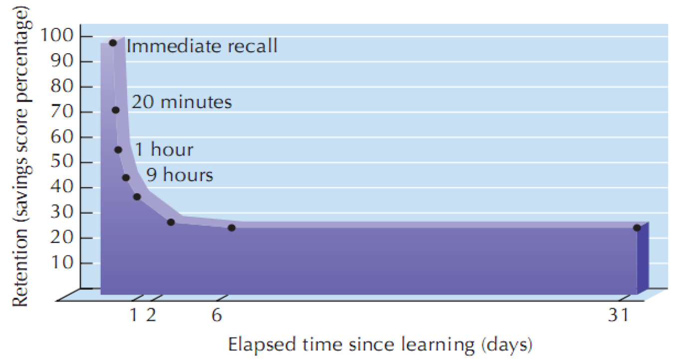 - 对于无语义的、死机硬背的集中学习,遗忘在开始阶段快速发生