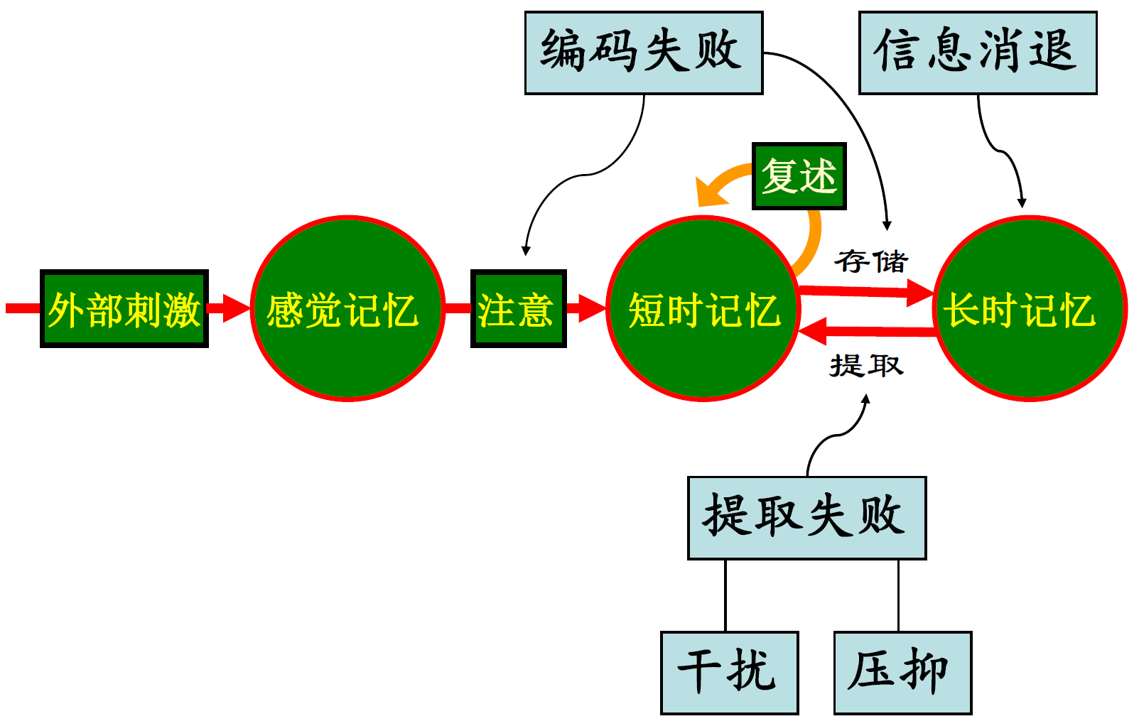 - 编码失败:信息没有得到有效编码,没能进入长时记忆