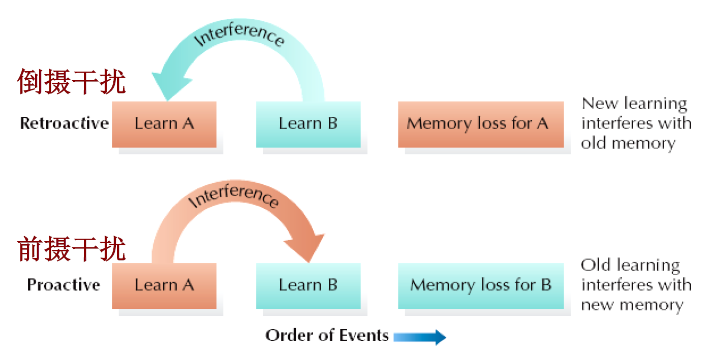 干扰导致遗忘:其他记忆信息的干扰会导致记忆信息提取的失败