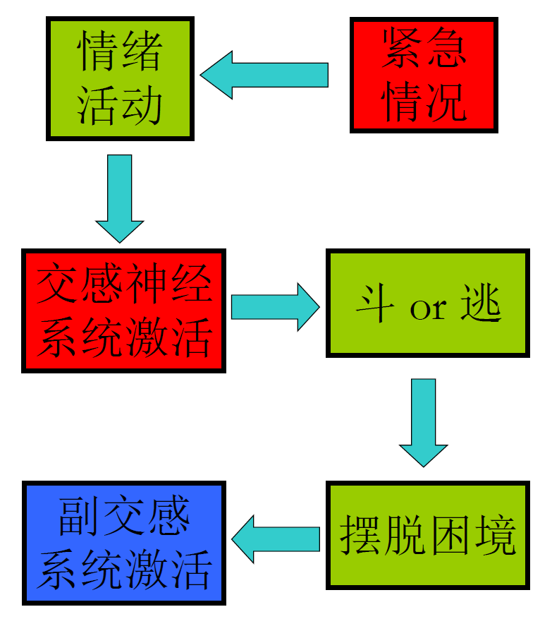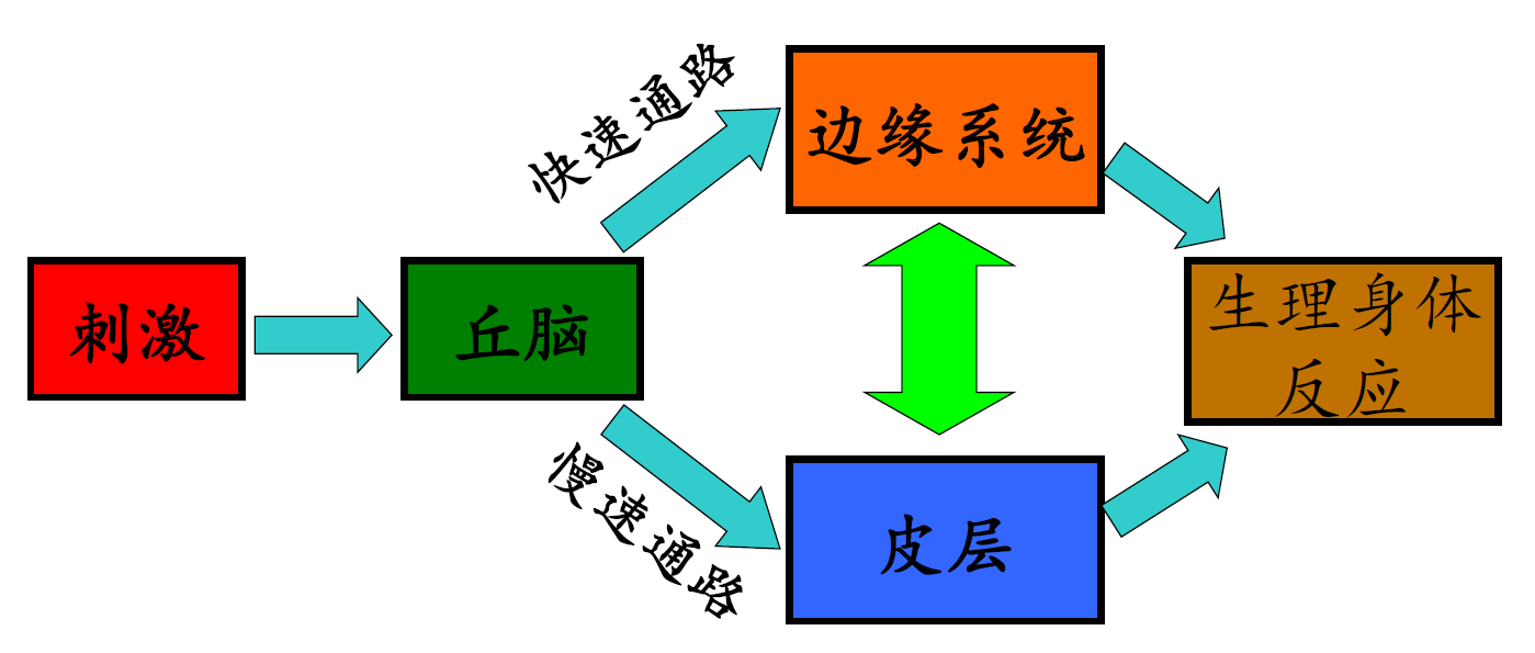 - 刺激情境:引起情绪反应的刺激物。是情绪产生的原因