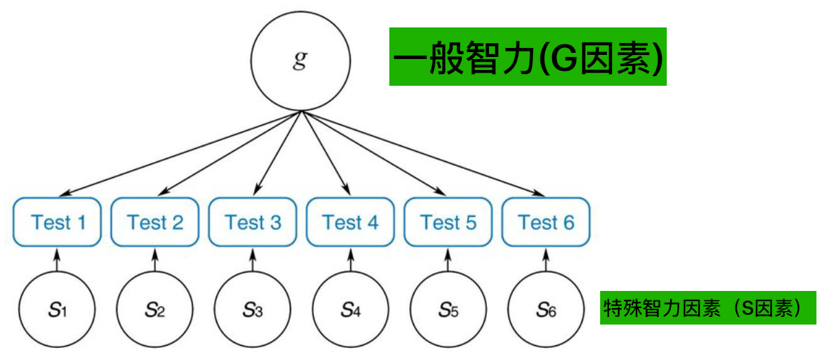 • 心理测量观点:认为智⼒由基本元素或成分构成,主要探讨智⼒究竟有哪些元素或成分