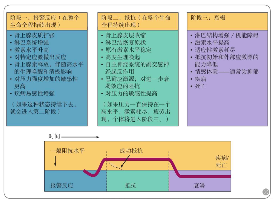 应激 / 压力(stress):一种反应模式,当刺激事件打破了有机体的平衡和负荷能力,或者超过了个体的能力所及,就会体现为应激。