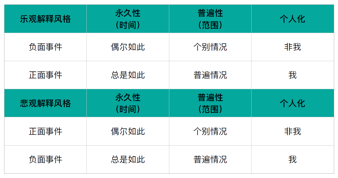 • 对应地,当一件坏事发生时,将其解释成个人化的原因,由此把一件坏事变成自己的缺点