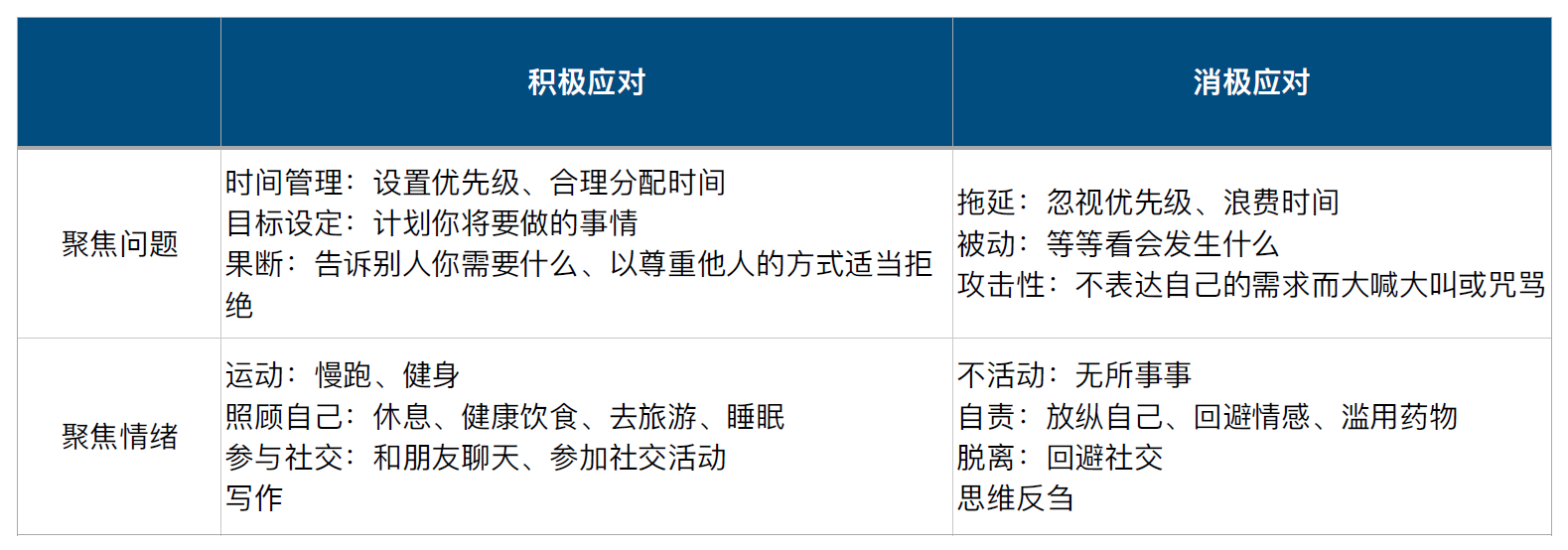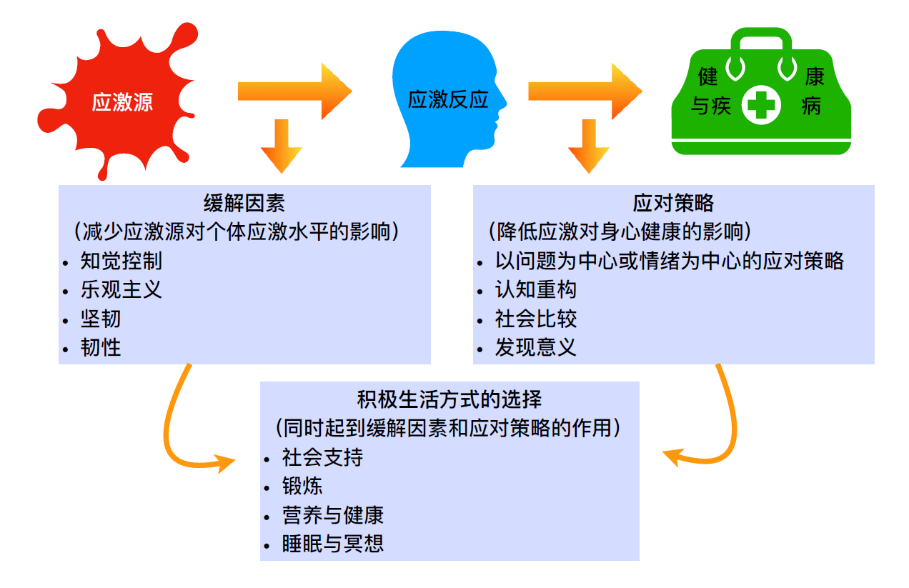 • 有效的应对策略能减少应激对健康的消极影响,而选择积极的生活方式会促进身心健康和提升整体幸福感。