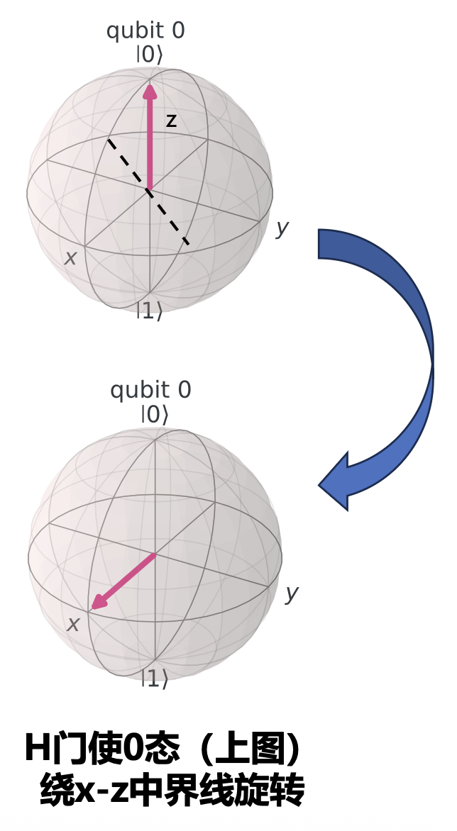 \[ \begin{aligned}|+\rangle&=\frac{1}{\sqrt2}(|0\rangle+|1\rangle)\\|-\rangle&=\frac{1}{\sqrt2}(|0\rangle-|1\rangle)\end{aligned} \]则任意量子态也可以表示为这组基的线性组合: $$ \psi=\alpha|+\rangle+\beta|-\rangle $$