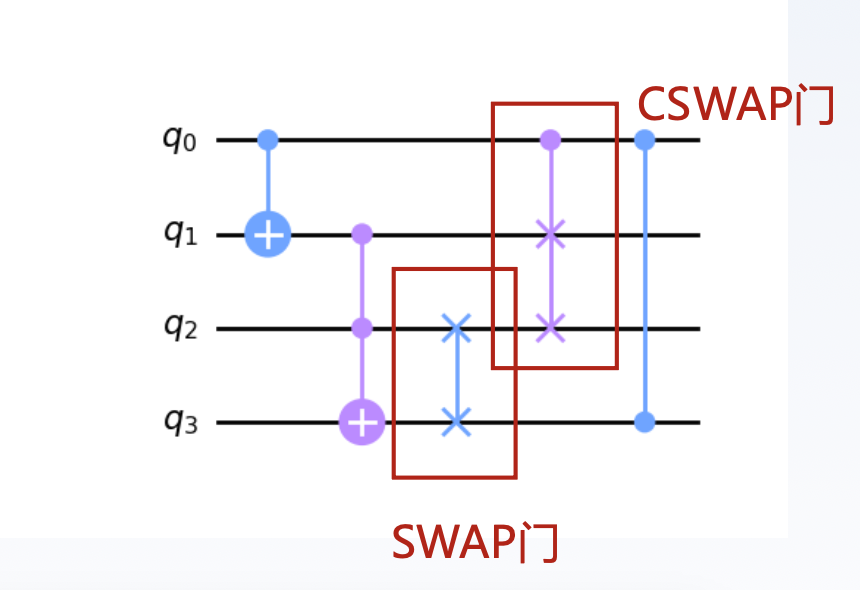 可以给 SWAP 门添加控制端,使之成为 CSWAP,即受控的 SWAP 门,又被称为 Fredkin 门。