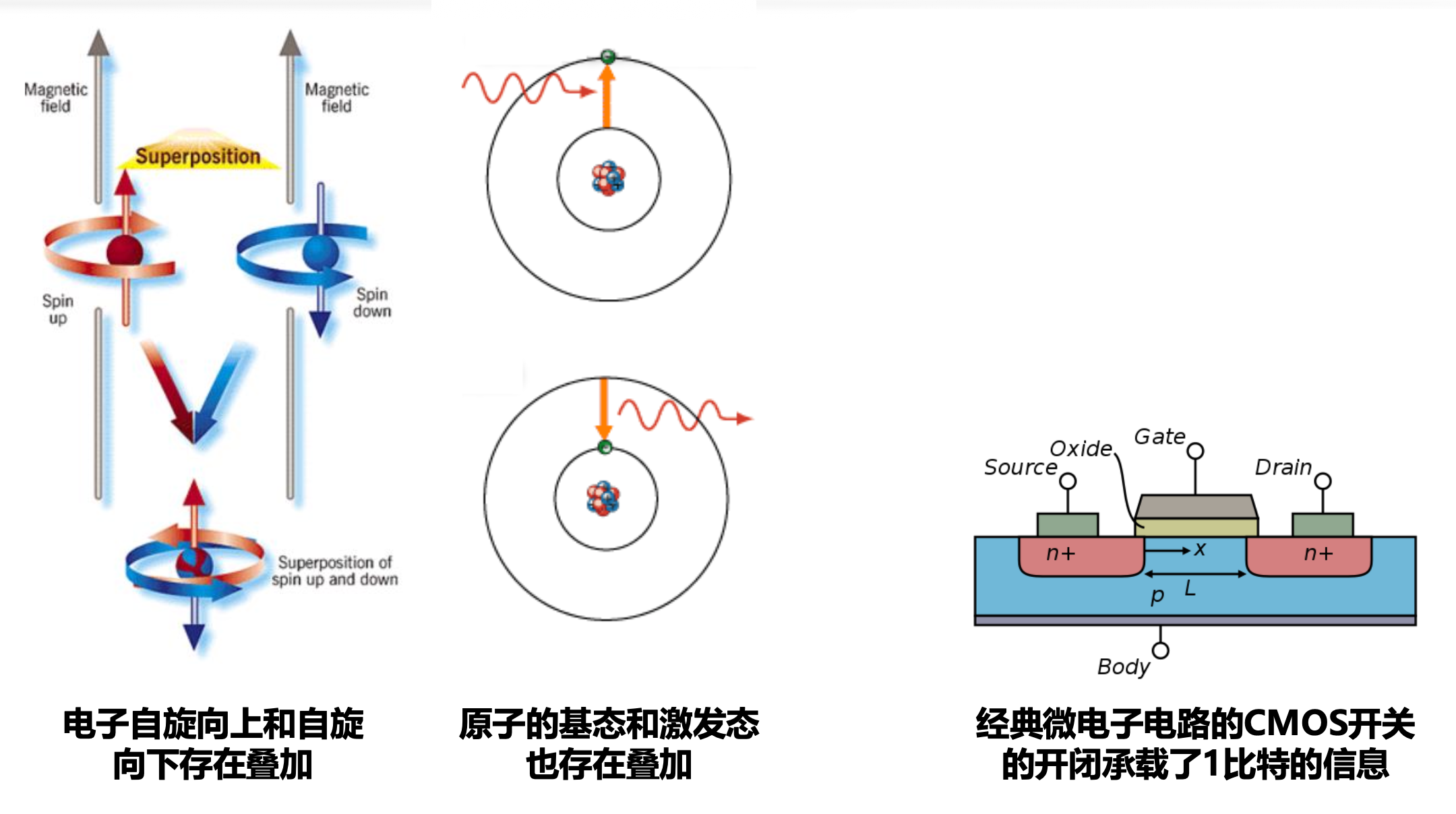 - 电子自旋叠加、能量态叠加等物理过程的抽象就是量子比特的叠加特性