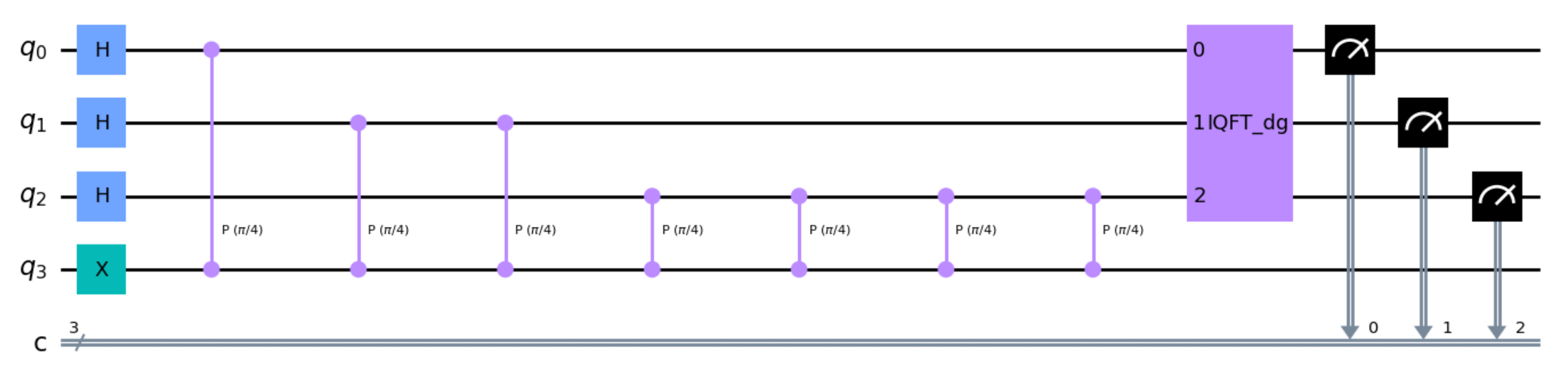 - 逆 QFT:对相位寄存器进行逆 QFT 操作,将振幅中的相位信息转换为可测量的计算基信息
