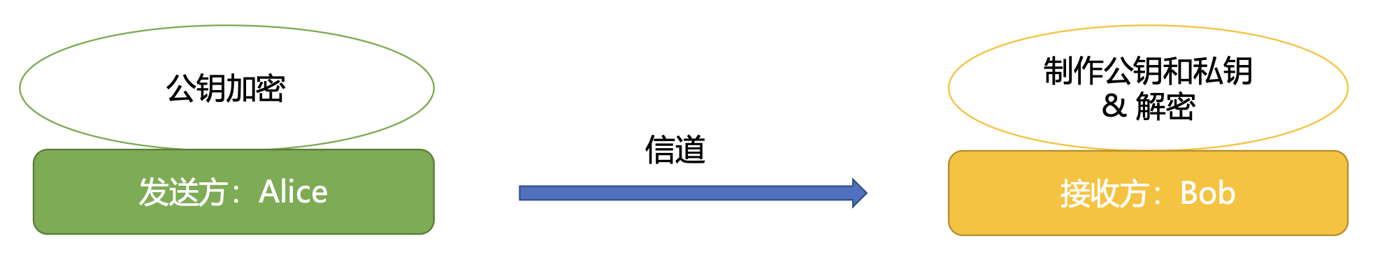 - 密钥由 Bob 自己“制造”并使用,公钥可告诉所有人,所有信息发送方都可使用公钥加密