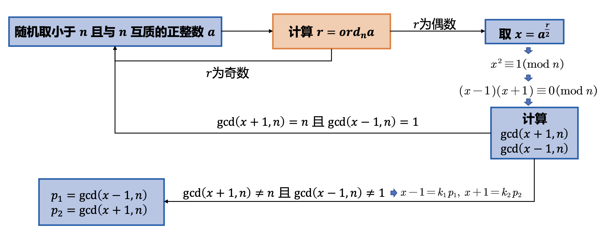 阶:\(a^r \equiv 1 \pmod n\)
