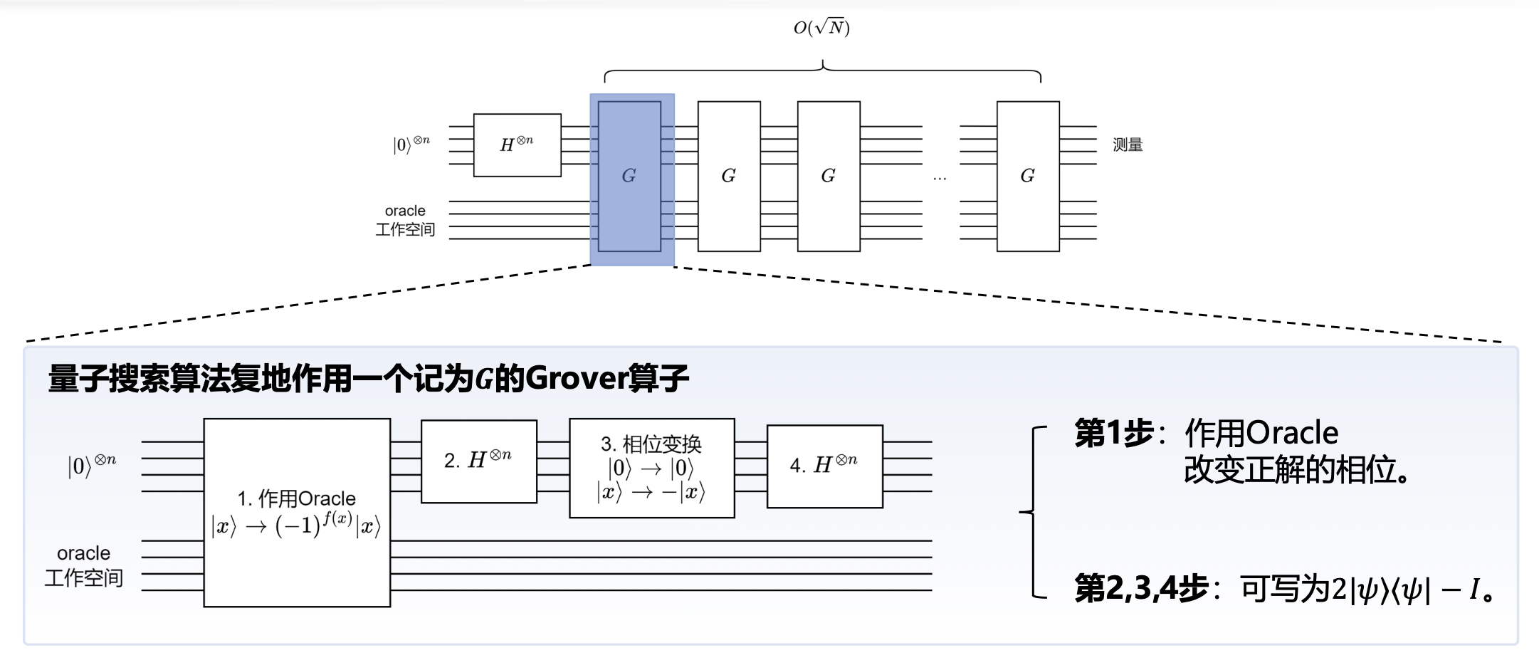 简单证明第 2, 3, 4 步:可写为 \(2|\psi\rangle\langle\psi| - I\)
