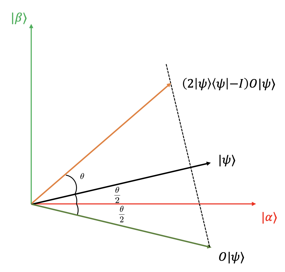 - \(G\) 算子几何意义:先将量子态相对 \(|\alpha\rangle\) 做对称,再将量子态相对 \(|\psi\rangle\) 做对称